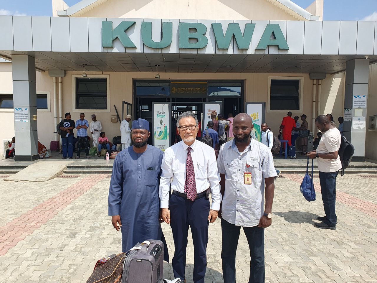 At the Kaduna Train Station in Nigeria With Two Assistants