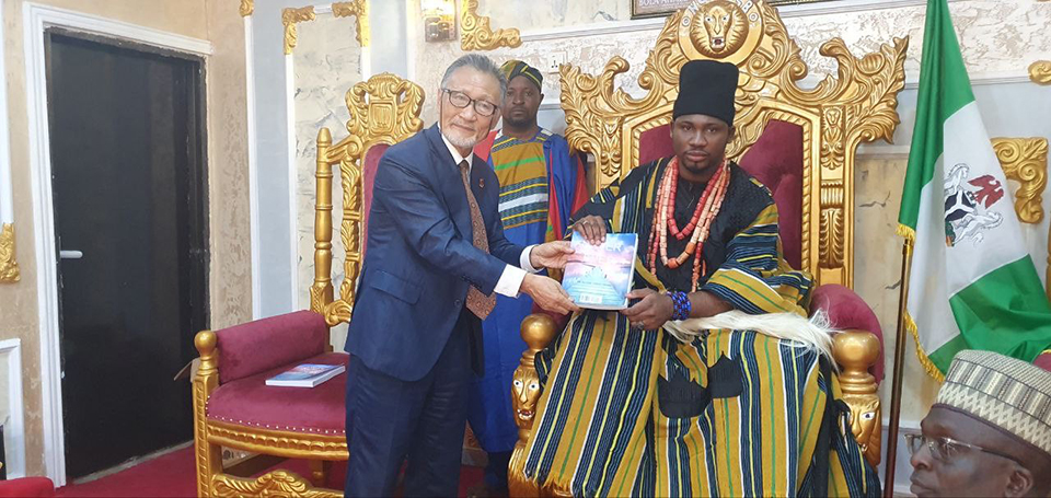 Gifting the King a copy of my book, Nigeria